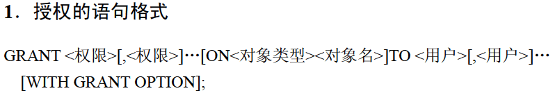 WITH GRANT OPTION:表示被授予权限的用户可以授予其他用户该权限