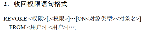 # 语法:REVOKE 权限列表 ON 库.对象名 FROM '用户名'@'登陆地址';