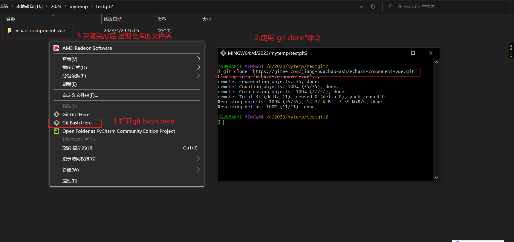 git clone "远程仓库地址"初始化仓库 - 克隆完成后,目录下会出现被克隆仓库的所有文件