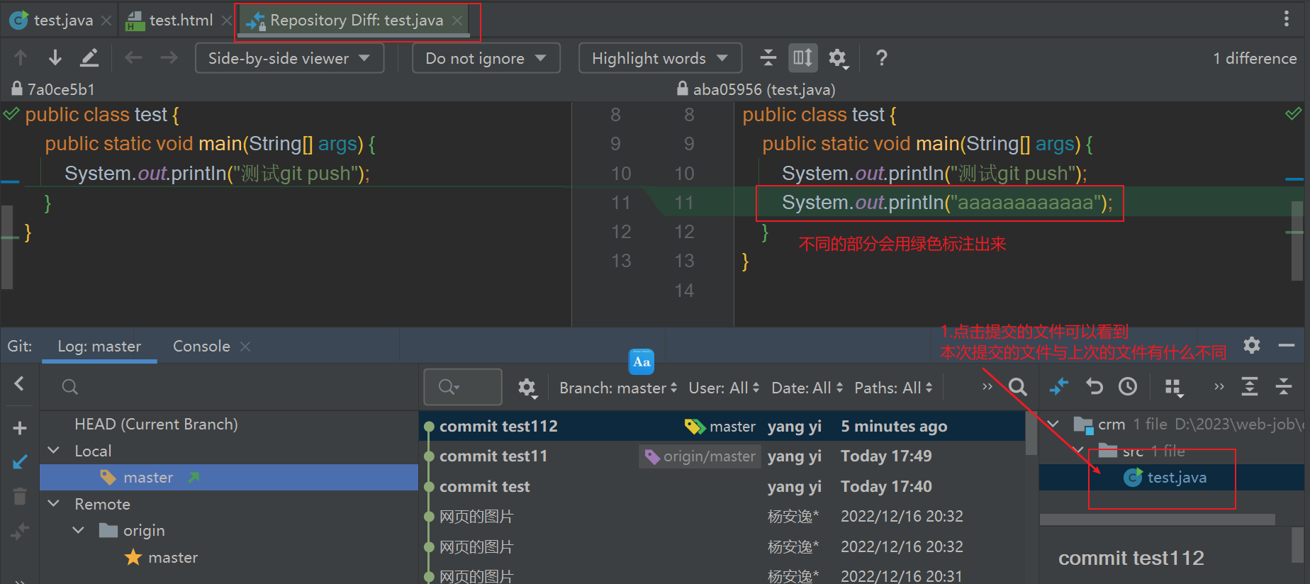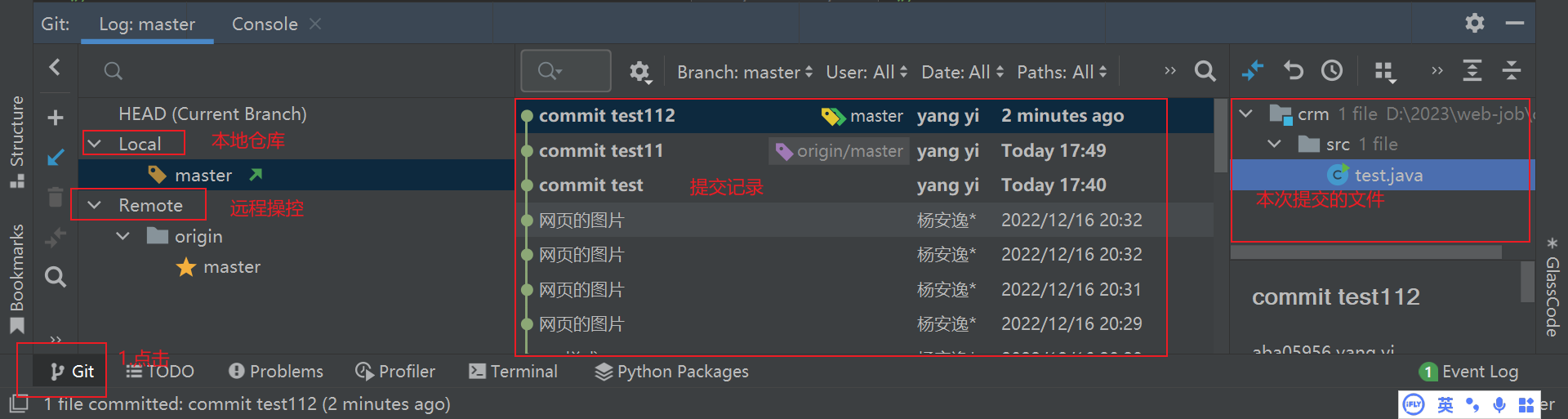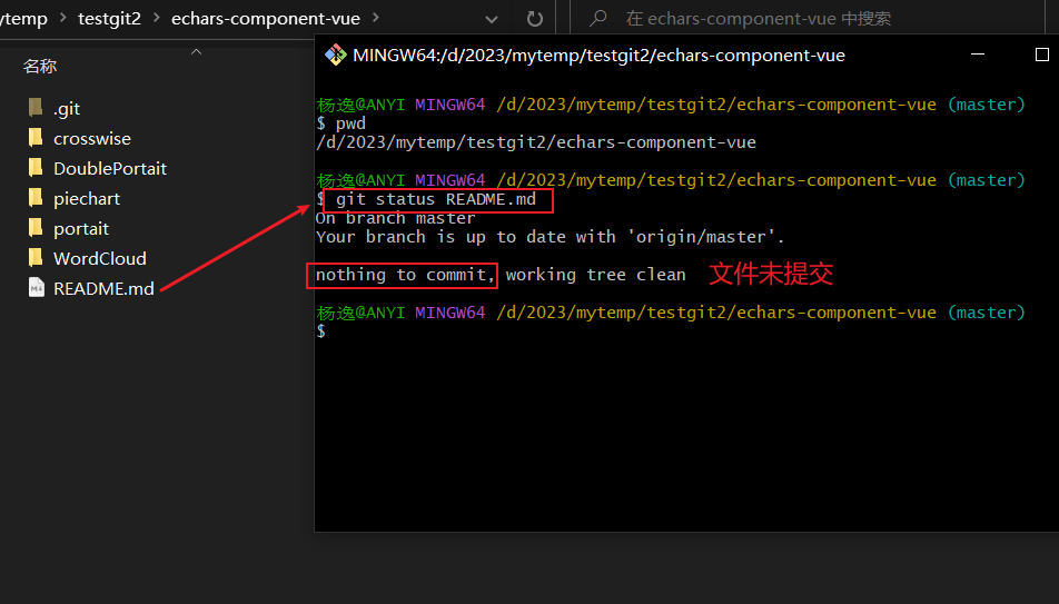 - Untracked:未跟踪,此文件在文件夹中,但并没有加入到git库,不参与版本控制.通过git add状态变为Staged