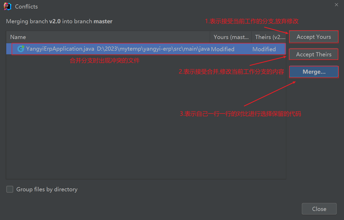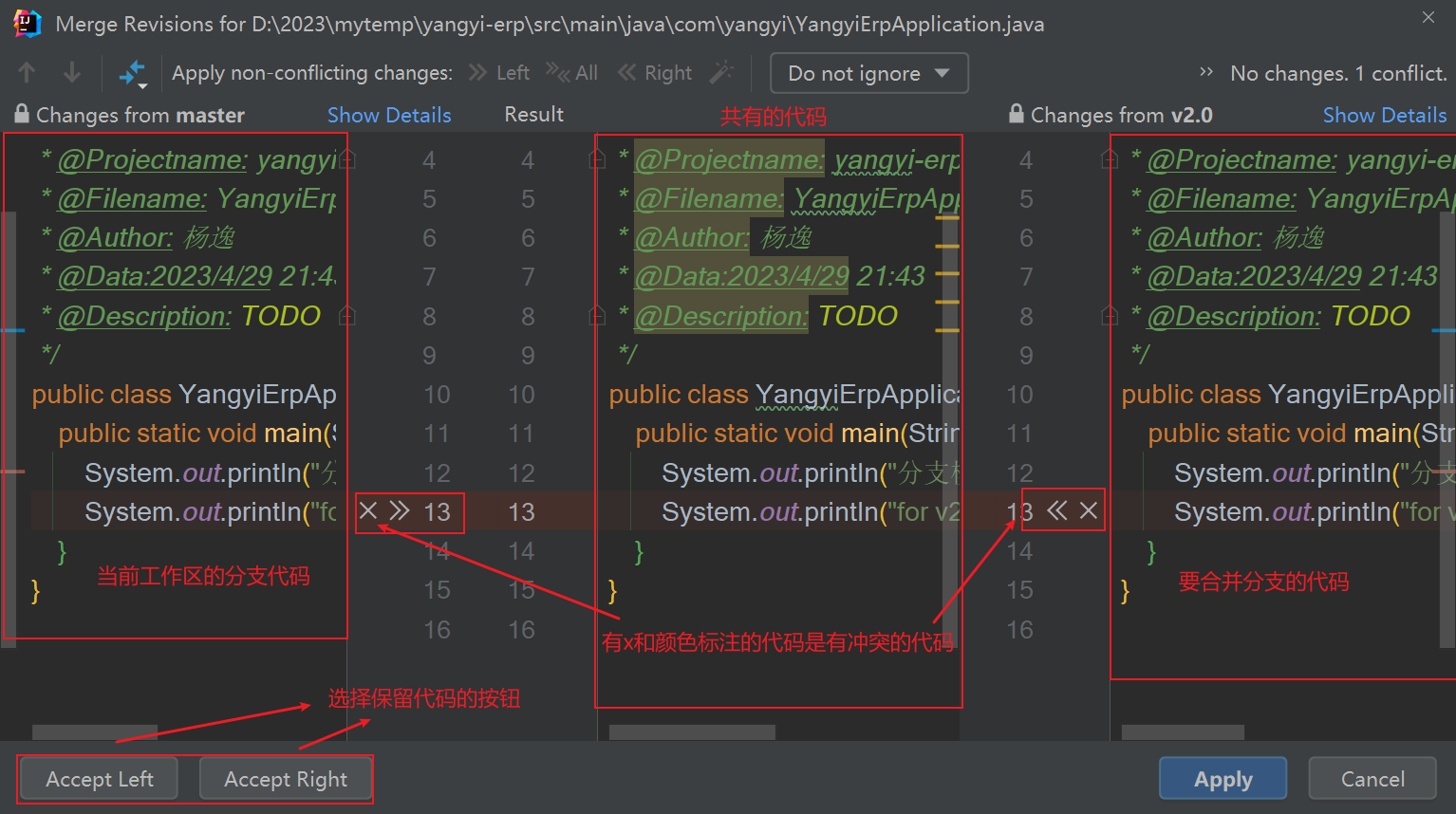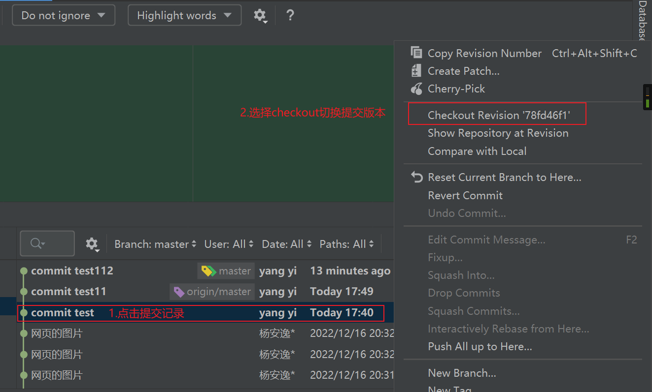 # 后者的所有变化都将被前者抵消,并且应用到当前分支