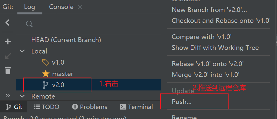 git push origin [branchname:branchname],将分支"branchname"推送到远程仓库