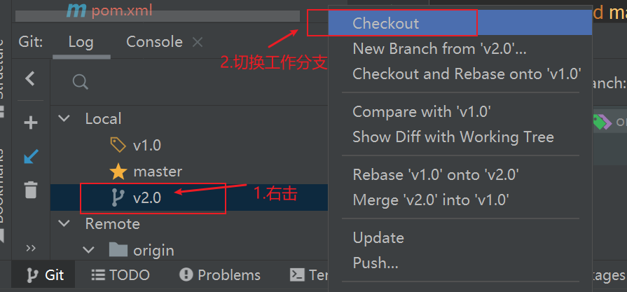git checkout [branchname]命令切换工作分支,"[branchname]"是分支的名称