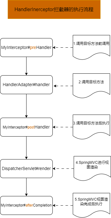 <!--当配置多个拦截器,先配置的先执行,执行的流程与filter过滤器的链式调用形式类似-->