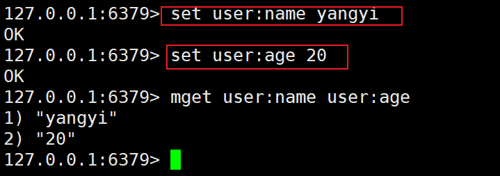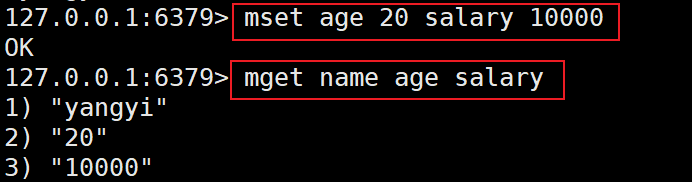#语法 mset 键1 值1 键2 值2 ... #例如 mset age 20 salary 10000 -