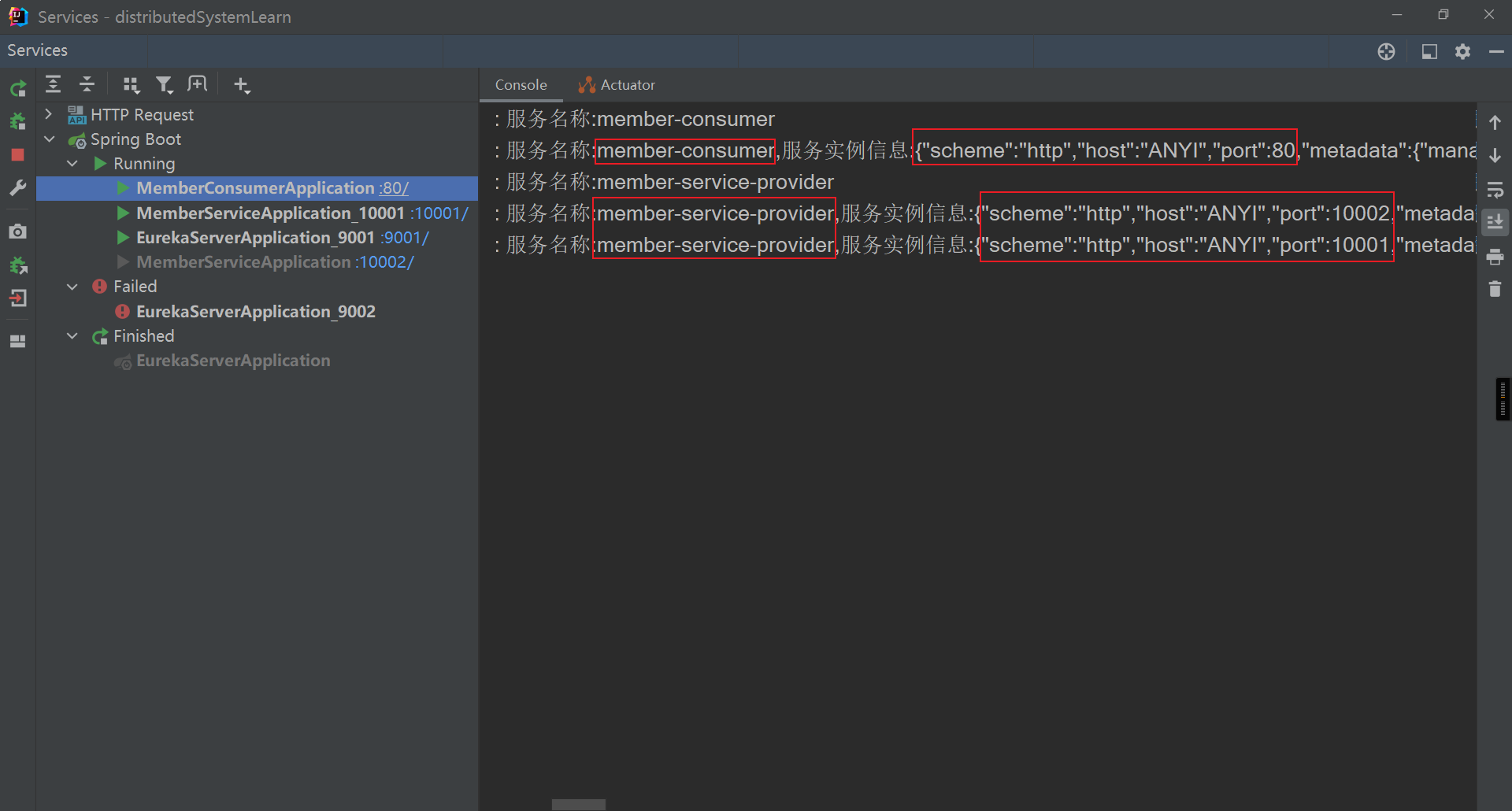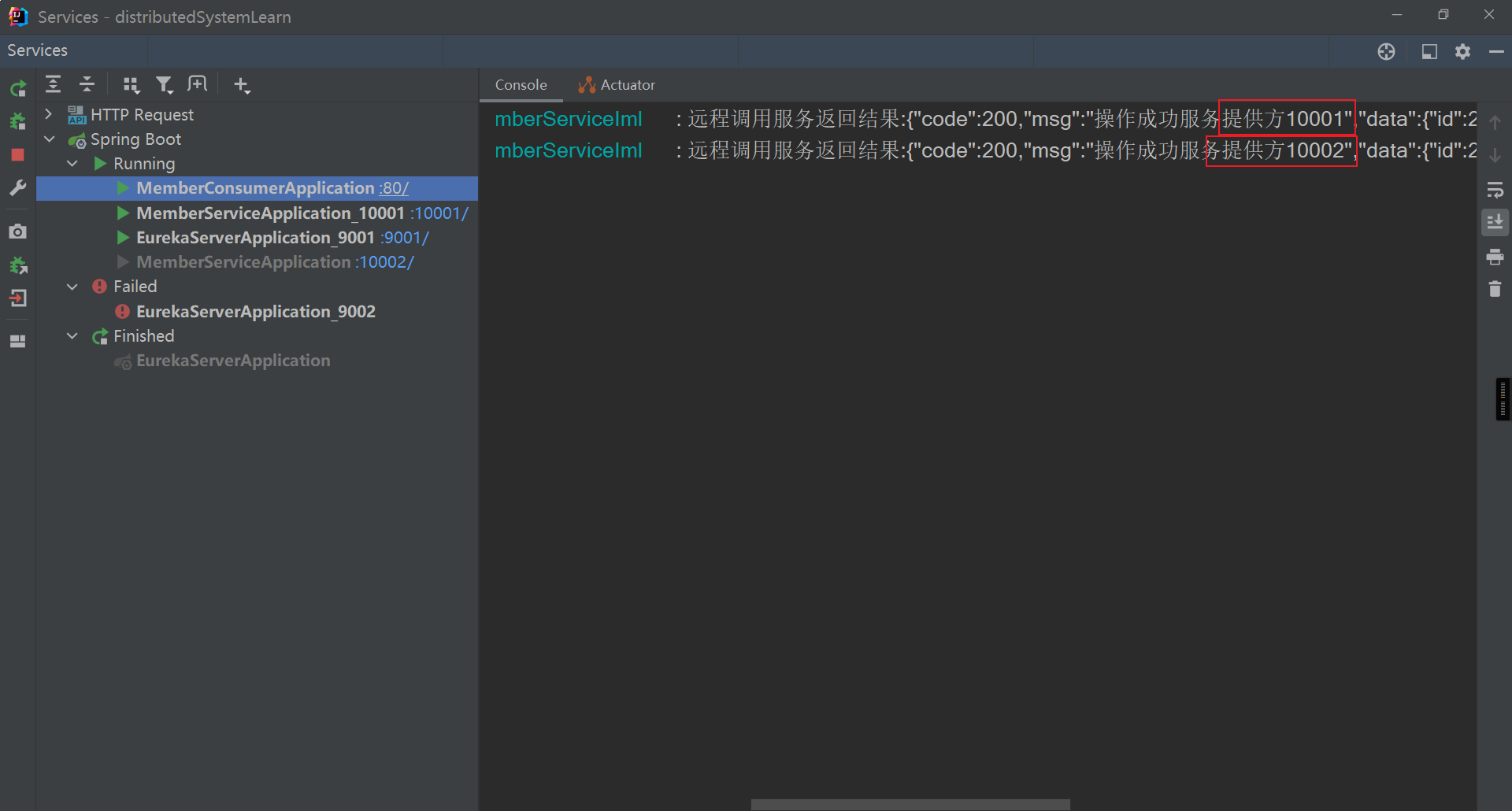- 因为member-service-provider-10001和member-service-provider-10002作为一个集群提供服务,因此需要将spring.application.name进行统一