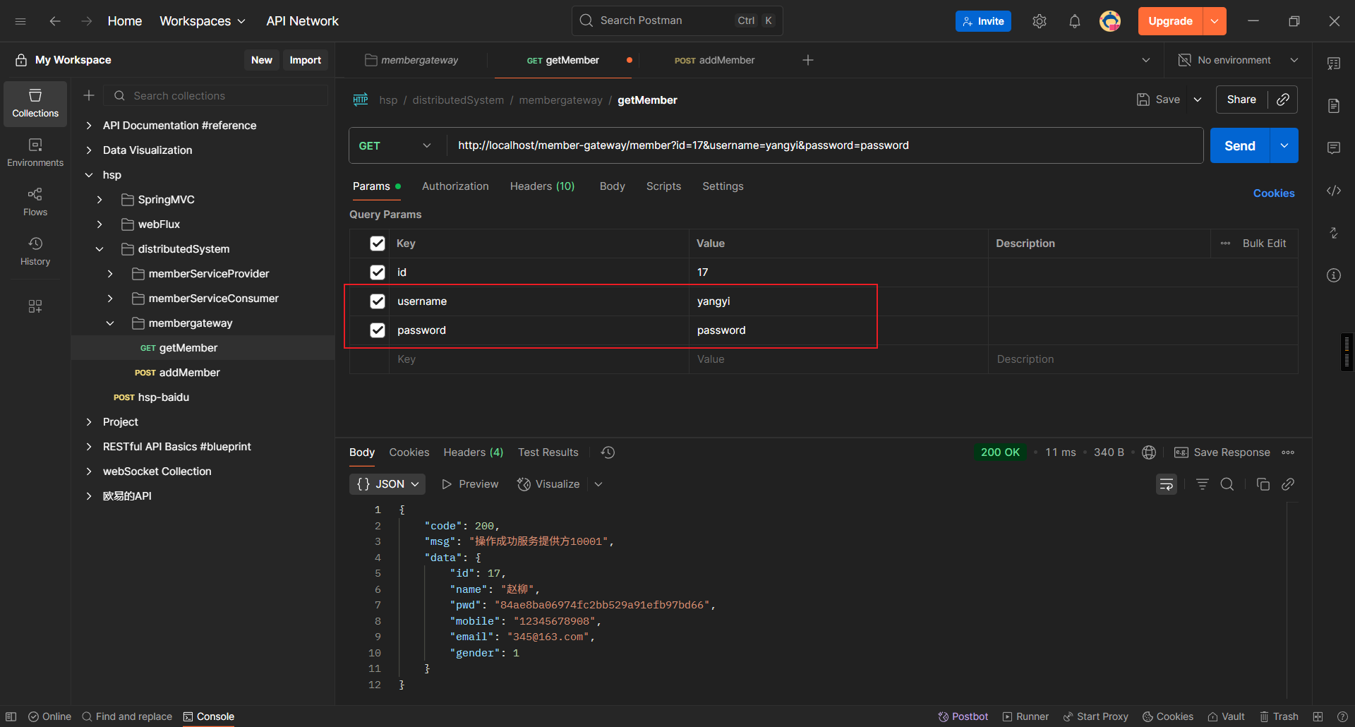 * 实现鉴权场景,当用户名和密码满足要求时才能通过网关