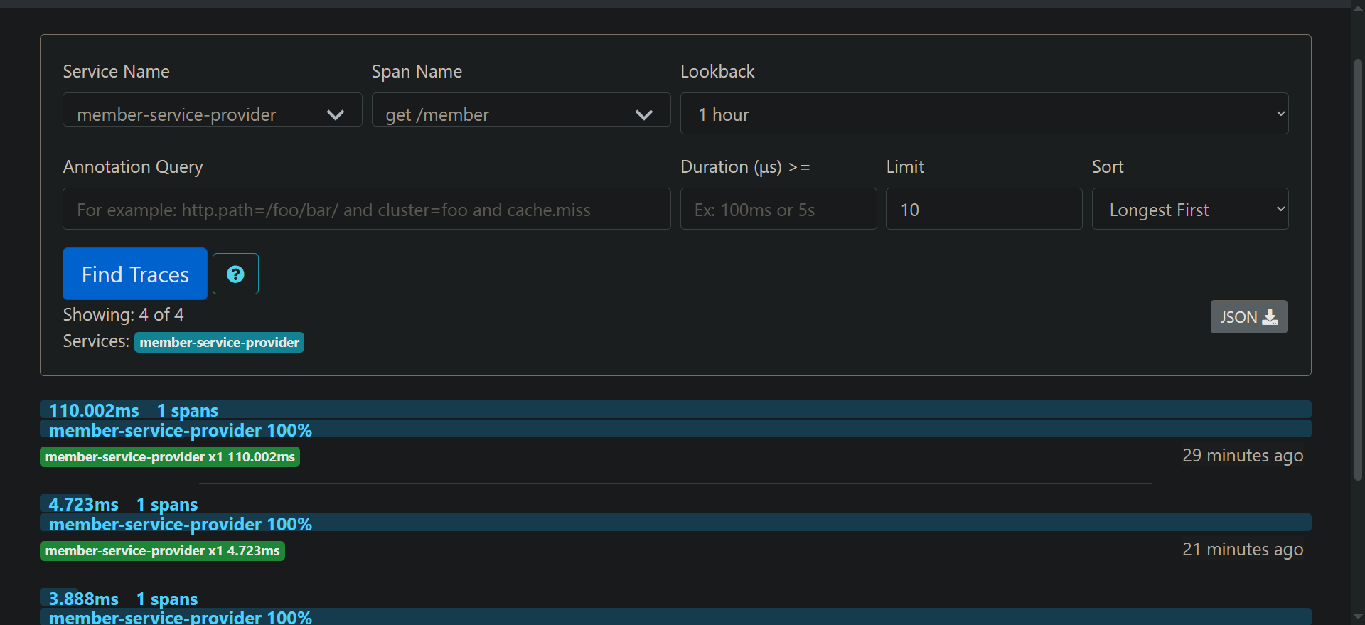 访问服务接口,然后查看浏览器中zipkin的仪表盘验证链路追踪是否成功