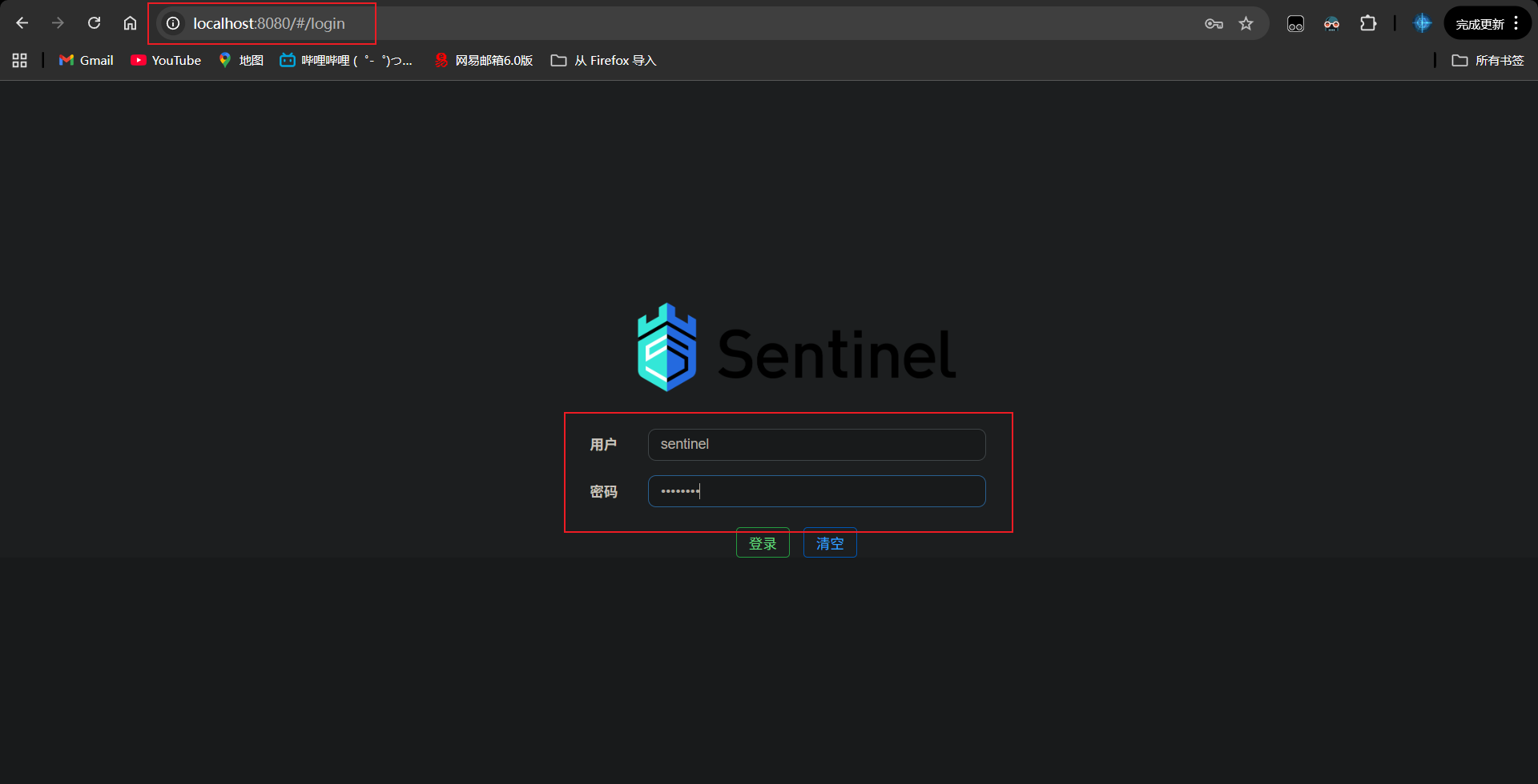 - 登陆的默认账号是sentinel,默认密码是sentinel