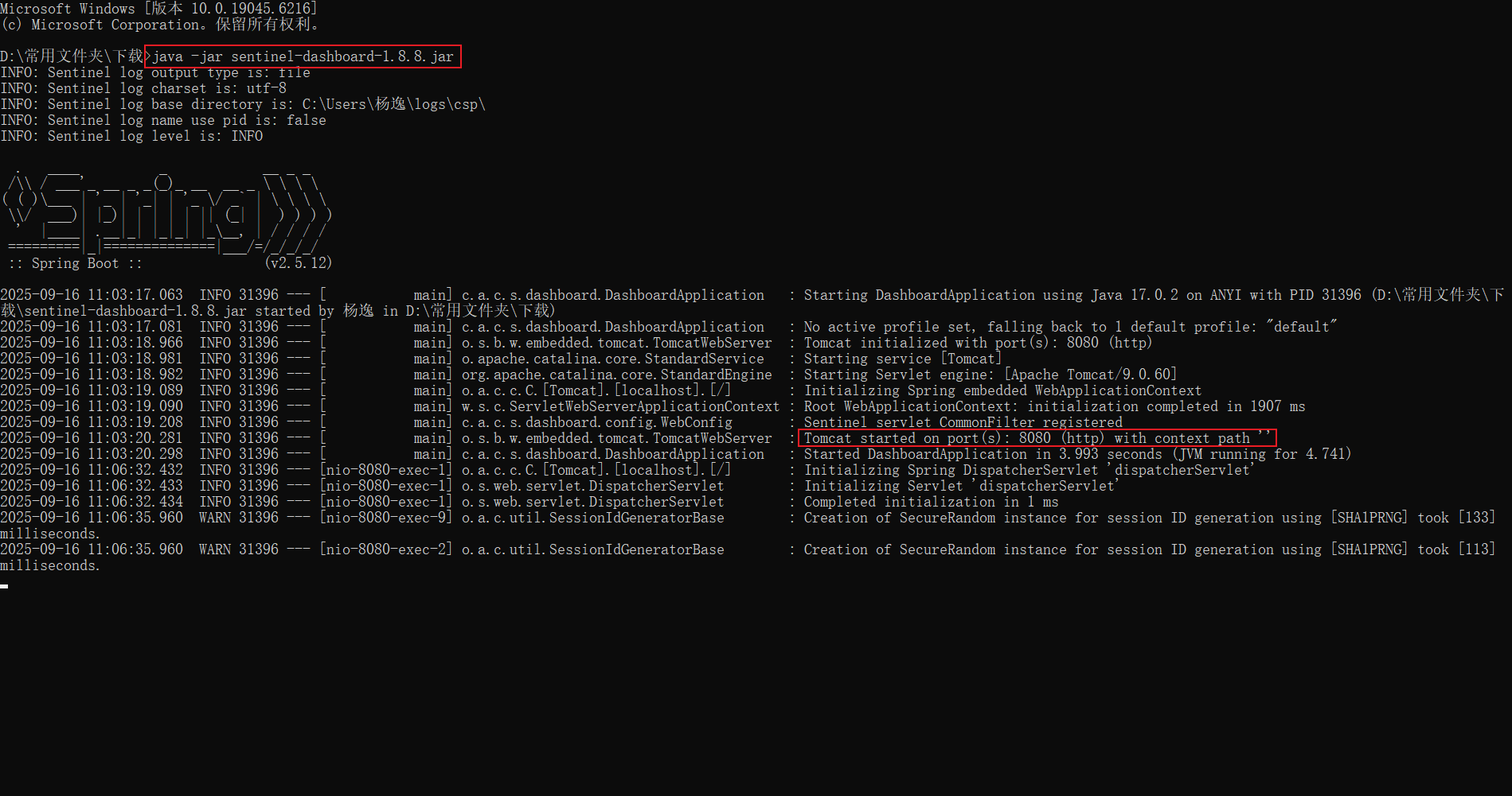 java -jar sentinel-dashboard-1.8.8.jar命令运行 - 默认使用的端口是8080,可以通过参数server.port指定运行的端口