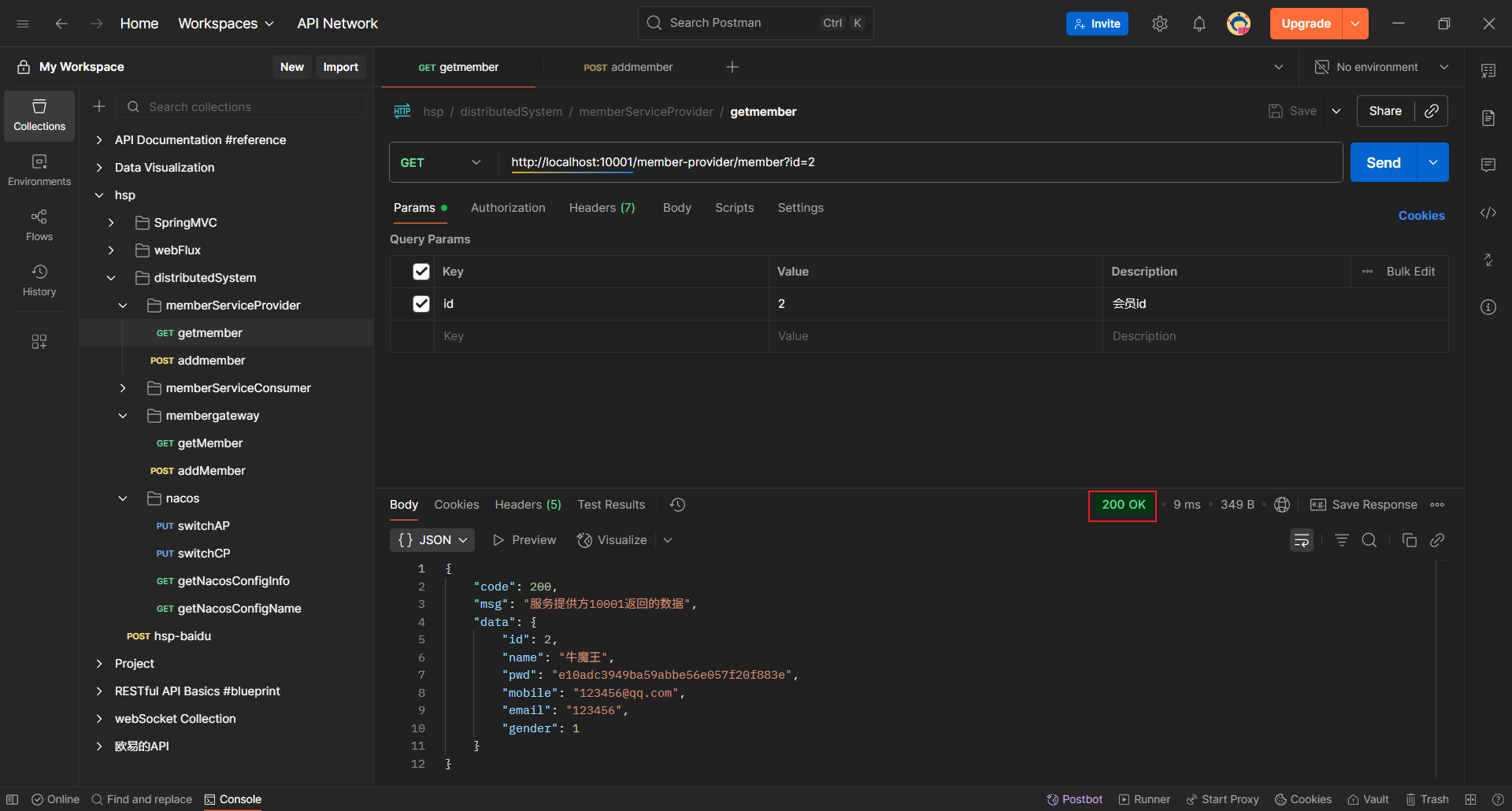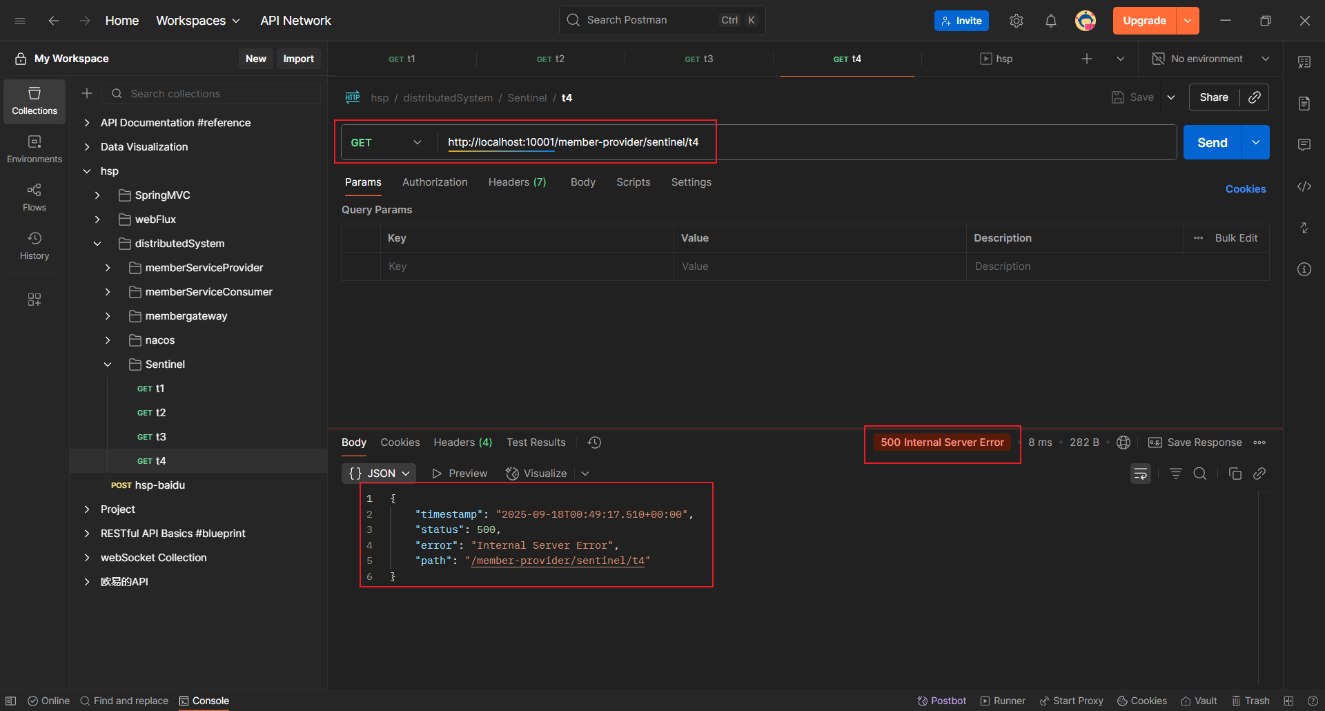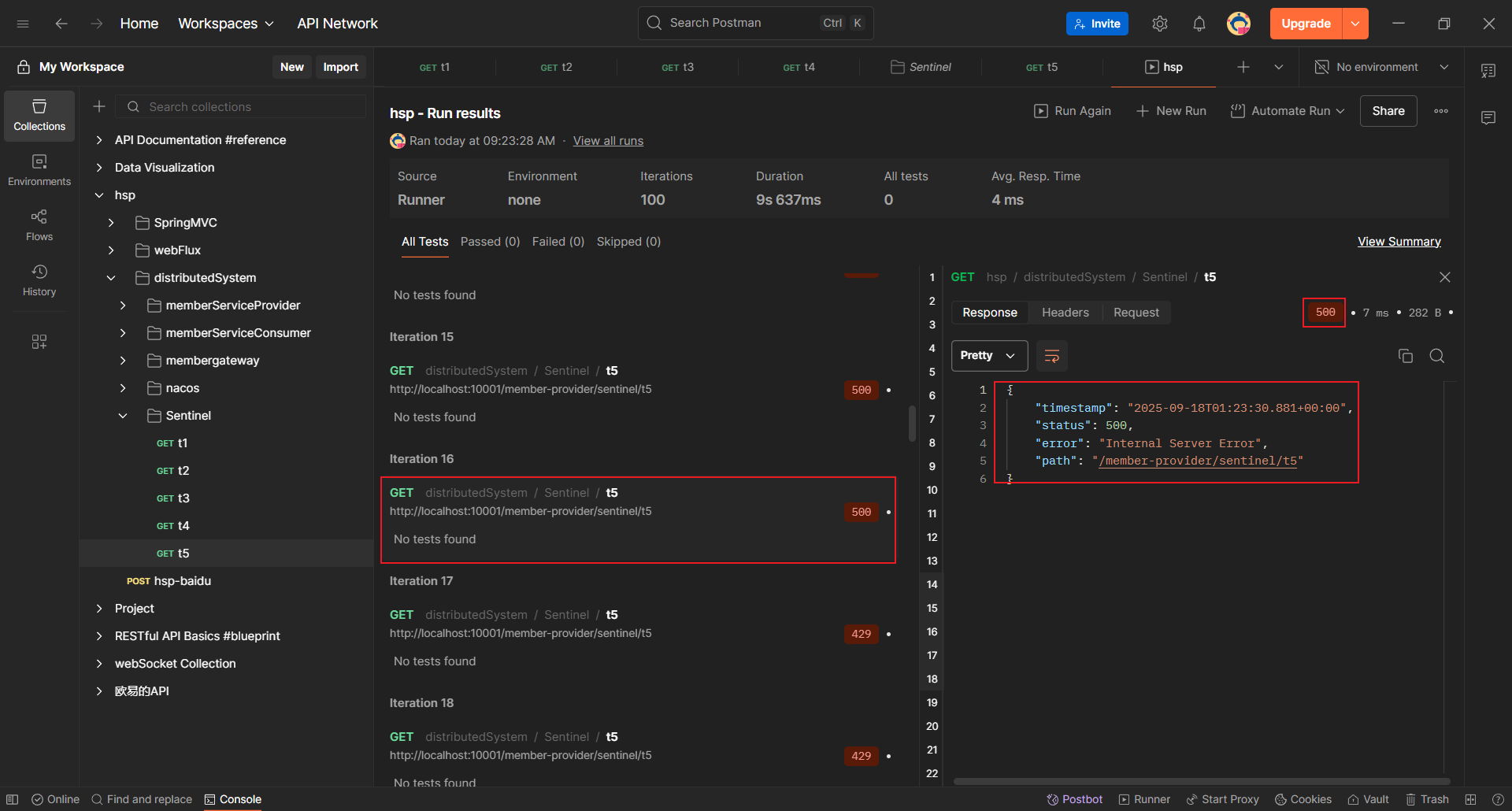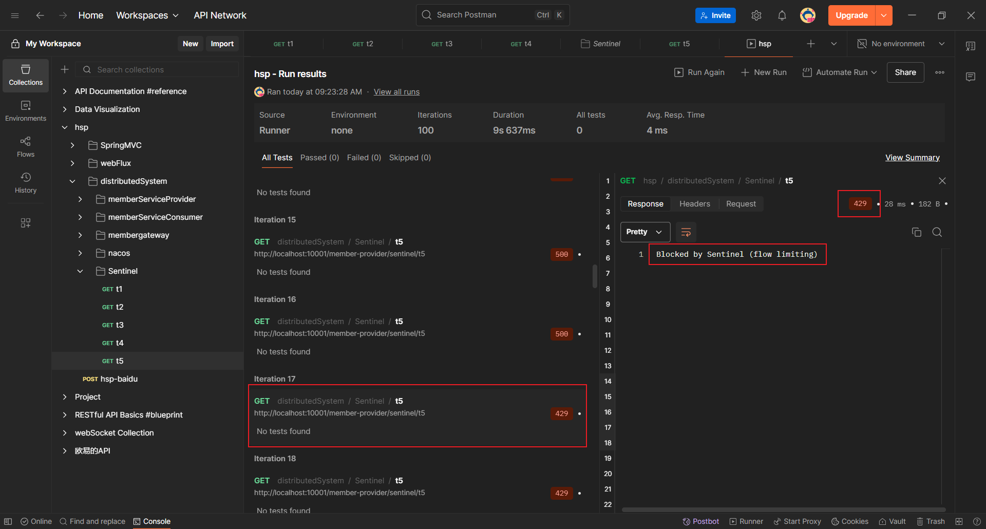 运行微服务,然后通过postman进行接口调用,最后查看Sentinel Dashboard验证微服务成功集成Sentinel客户端