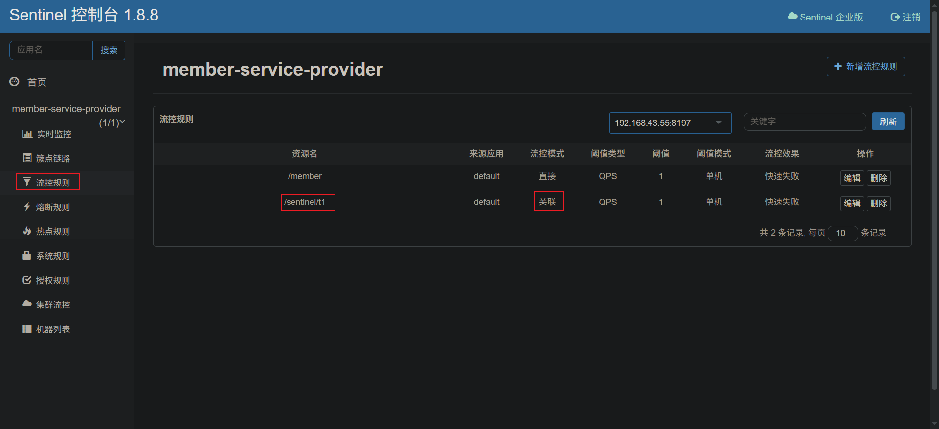 - strategy∶流控模式,0表示直接,1表示关联,2表示链路