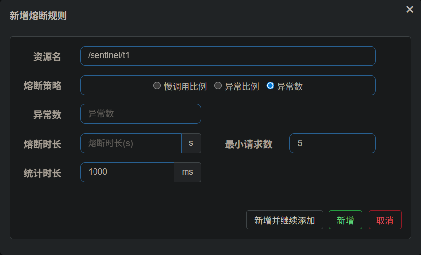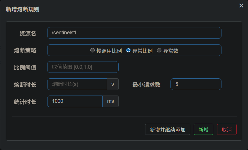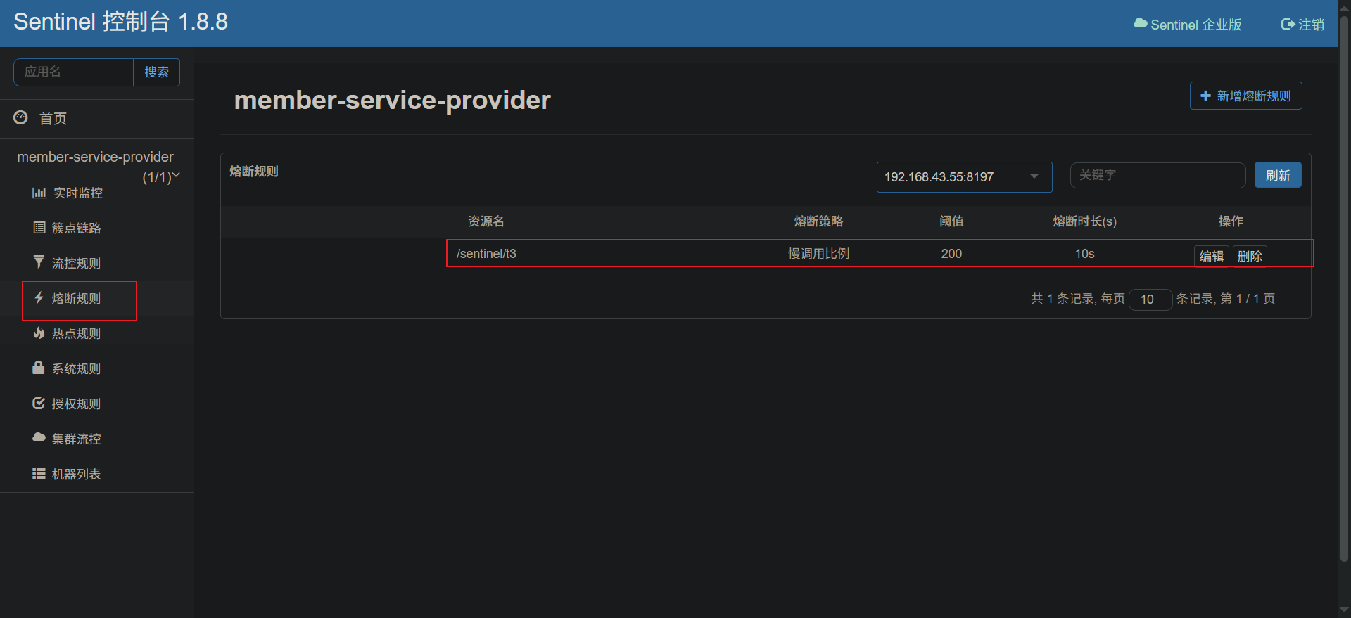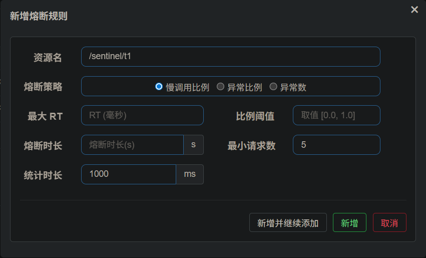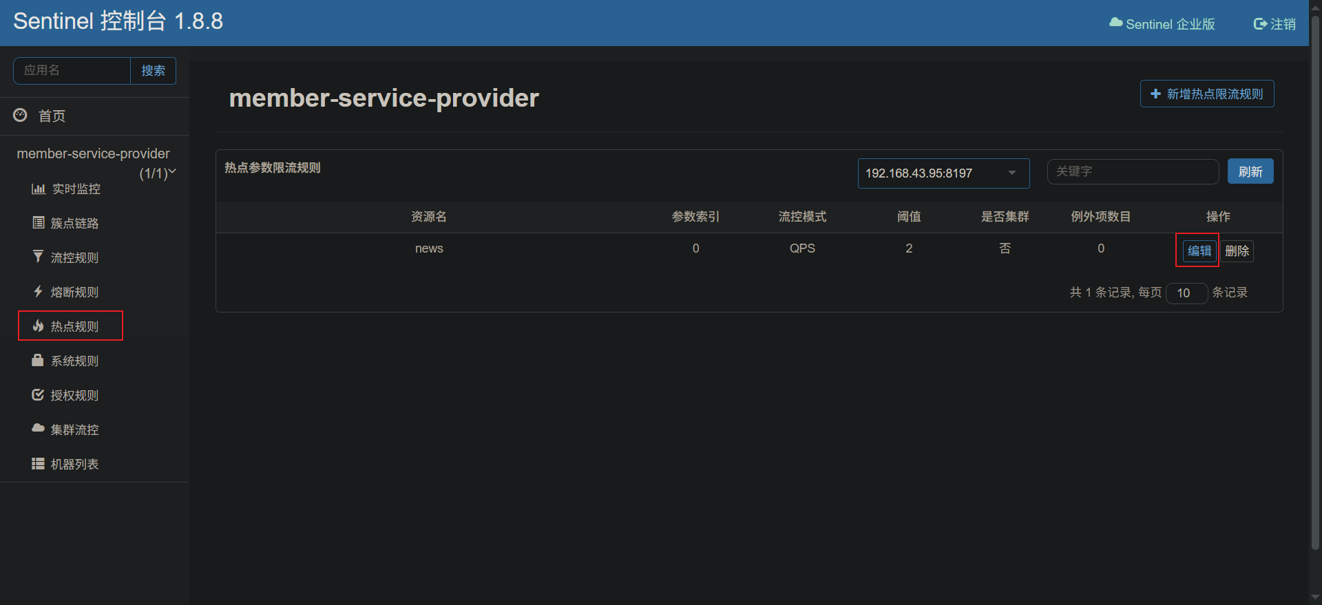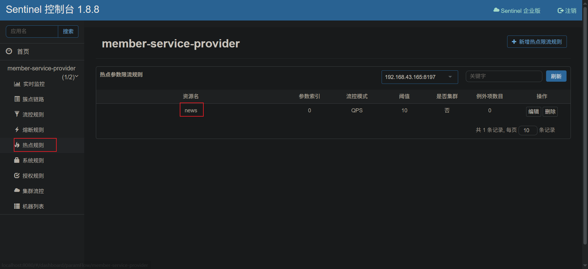 注意,如果没有配置持久化规则,配置的熔断策略和限流规则会在Sentinel重启后丢失