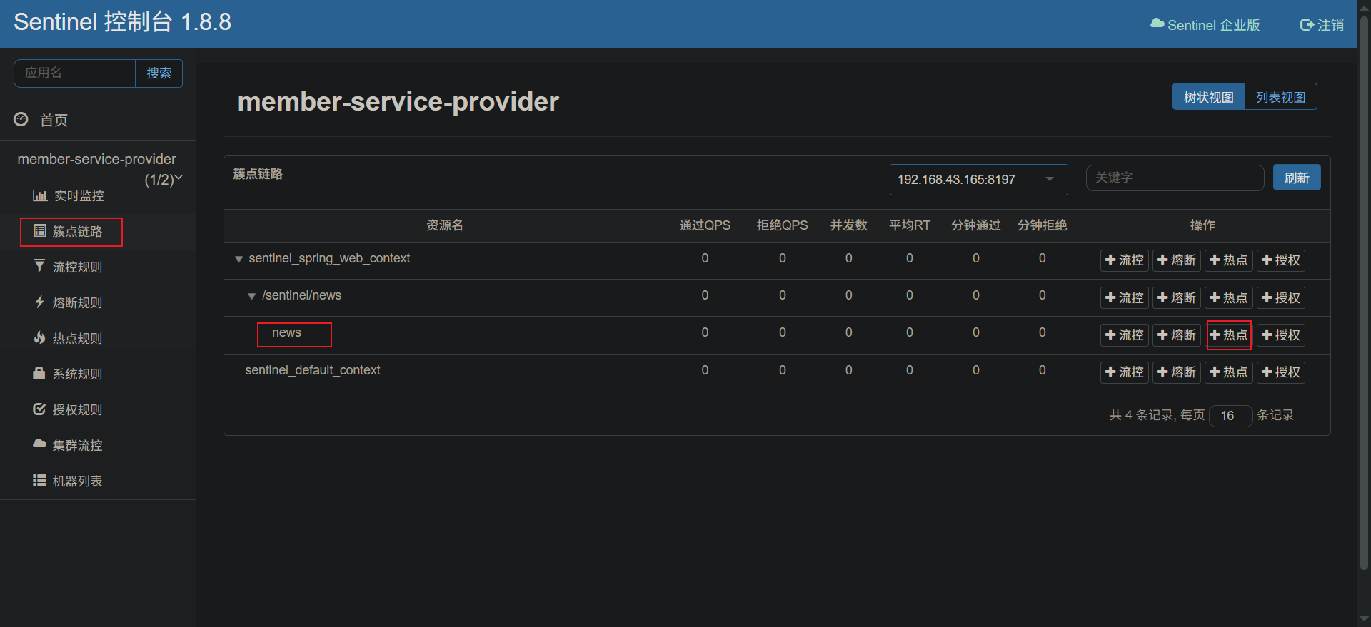 使用postman调用接口,查看Sentinel Dashboard,验证Sentinel是否配置成功