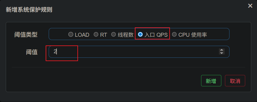 - grade∶阈值类型,0表示线程数,1表示QPS