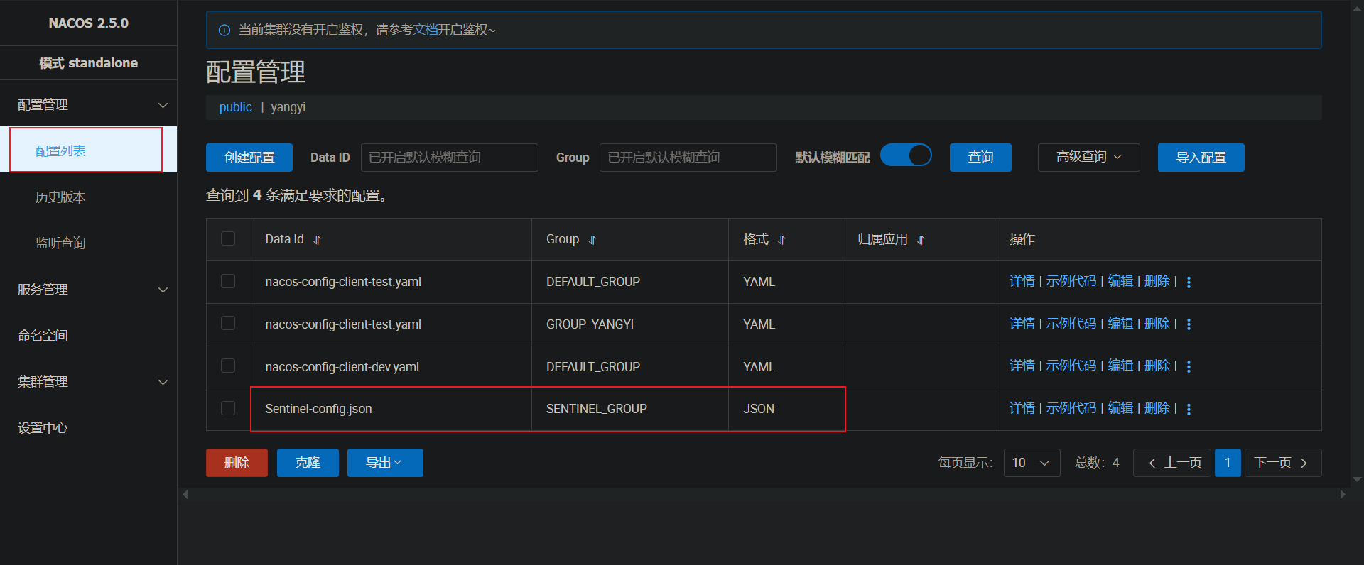 server: port: 80 servlet: context-path: /member-consumer spring: application: name: member-consumer cloud: nacos: discovery: #配置nacos服务注册中心的地址 server-addr: localhost:8848 sentinel: transport: dashboard: localhost:8080 port: 8719 datasource: #配置一个数据源,规则持久化的数据源 ds1: nacos: server-addr: localhost:8848 dataId: Sentinel-config.json groupId: SENTINEL_GROUP data-type: json rule-type: flow feign: sentinel: #配置OpenFein整合Sentinel enabled: true -
